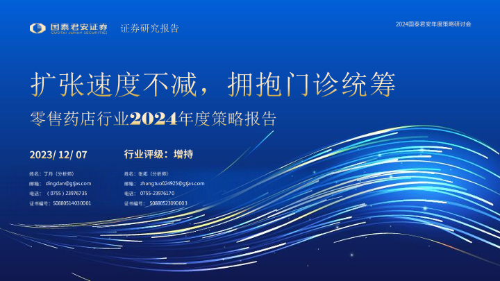 【国泰君安证券】【2024】2024年度策略研讨会零售药店行业:扩张速度不减,拥抱门诊统筹-43页