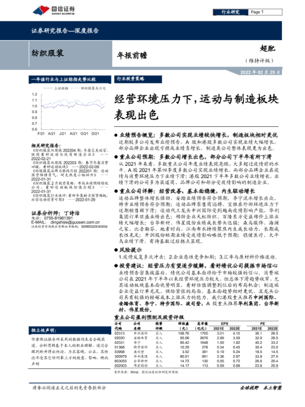 【国信证券】【20220225】纺织服装行业年报前瞻:经营环境压力下,运动与制造板块表现出色-26页