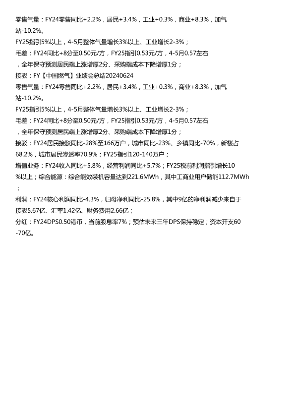 【中国燃气】【20240624】中国燃气业绩会总结20240624零售气量FY24零售同比-1页