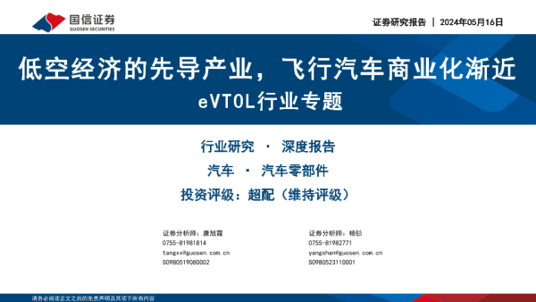 【国信证券】【20240516】国信证券:eVTOL行业专题-低空经济的先导产业-飞行汽车商业化渐近-53页