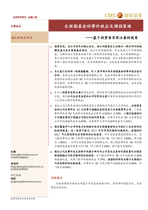 A股市场 事件效应 投资者有限注意 未预期盈余 金融工程