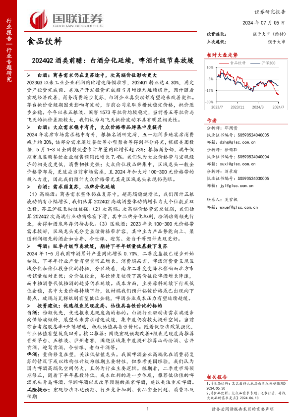 【国联证券】【20240705】2024Q2酒类前瞻:白酒分化延续,啤酒升级节奏放缓-13页