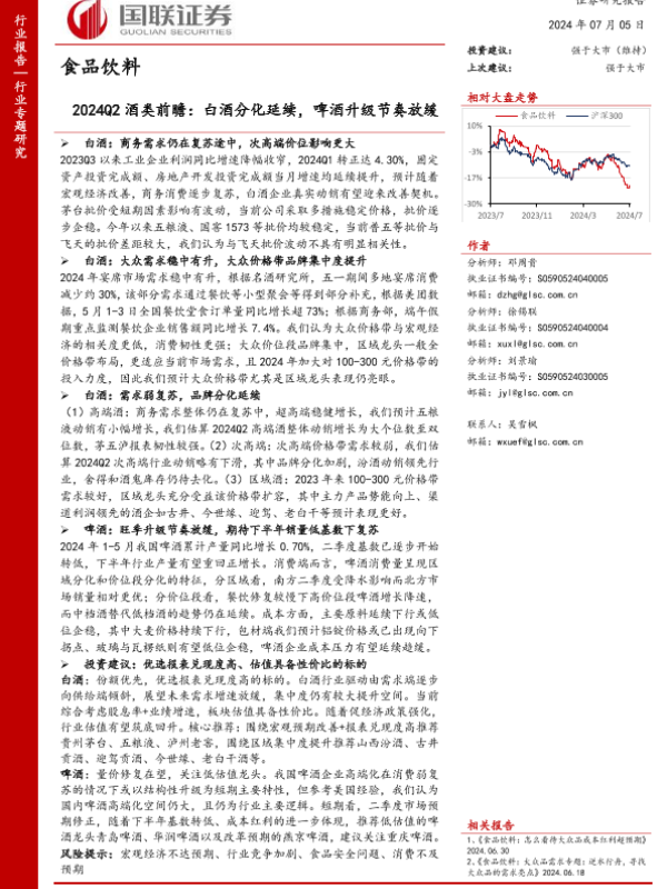 2024Q2 啤酒 白酒 行业分析 食品饮料