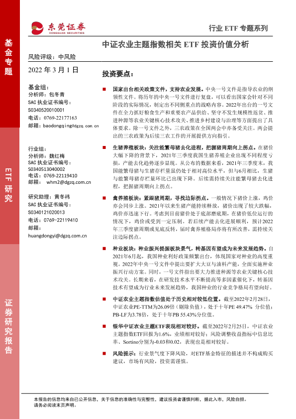 【东莞证券】【20220301】行业ETF专题系列:中证农业主题指数相关ETF投资价值分析-24页