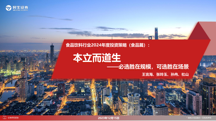 【民生证券】【20231215】食品饮料行业2024年度投资策略(食品篇):本立而道生-必选胜在规模,可选胜在场景-64页