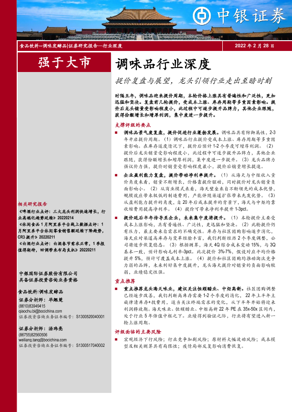 【中银证券】【20220228】调味品行业深度:提价复盘与展望,龙头引领行业走出至暗时刻-24页