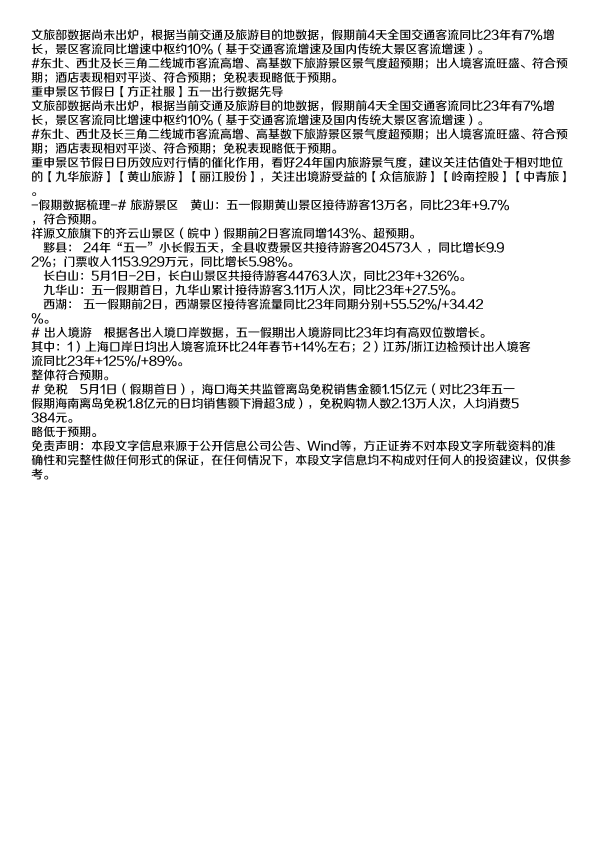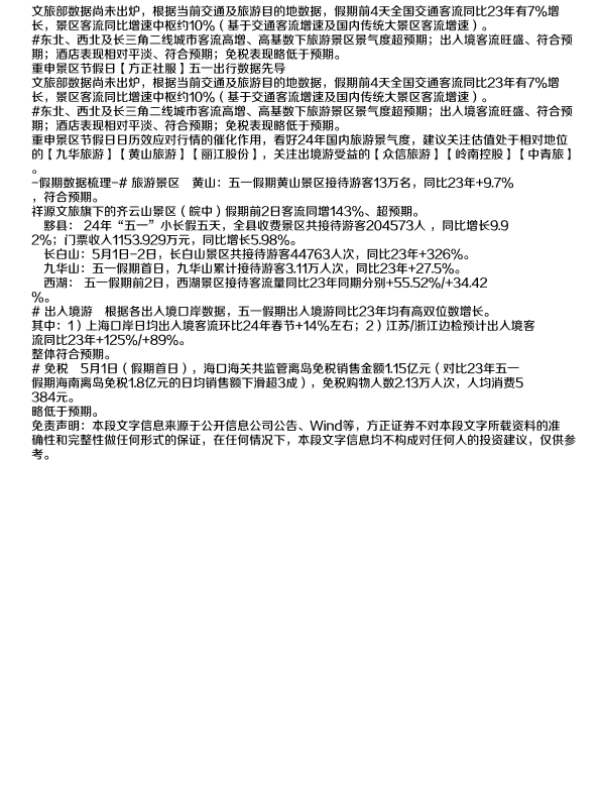 【方正社服】【2024】【方正社服】五一出行数据先导文旅部数据尚未出炉,根据当前交通及旅游目的地数据-1页