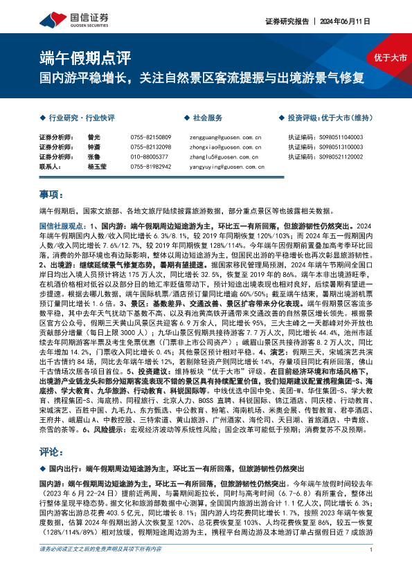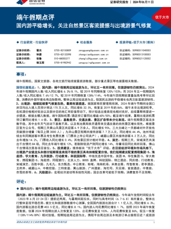【国信证券】【20240611】端午假期点评:国内游平稳增长,关注自然景区客流提振与出境游景气修复-6页