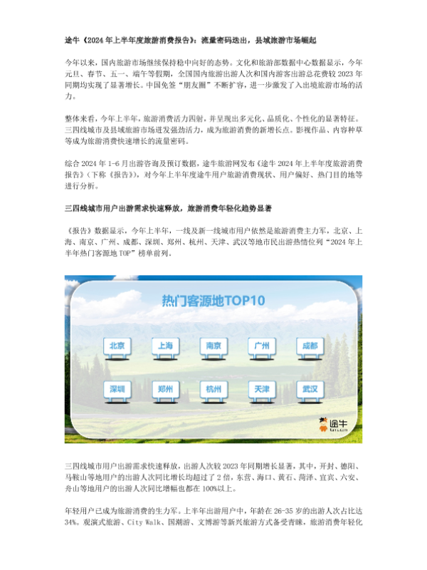 【途牛】【202406】2024年上半年度旅游消费报告-5页
