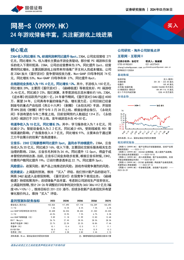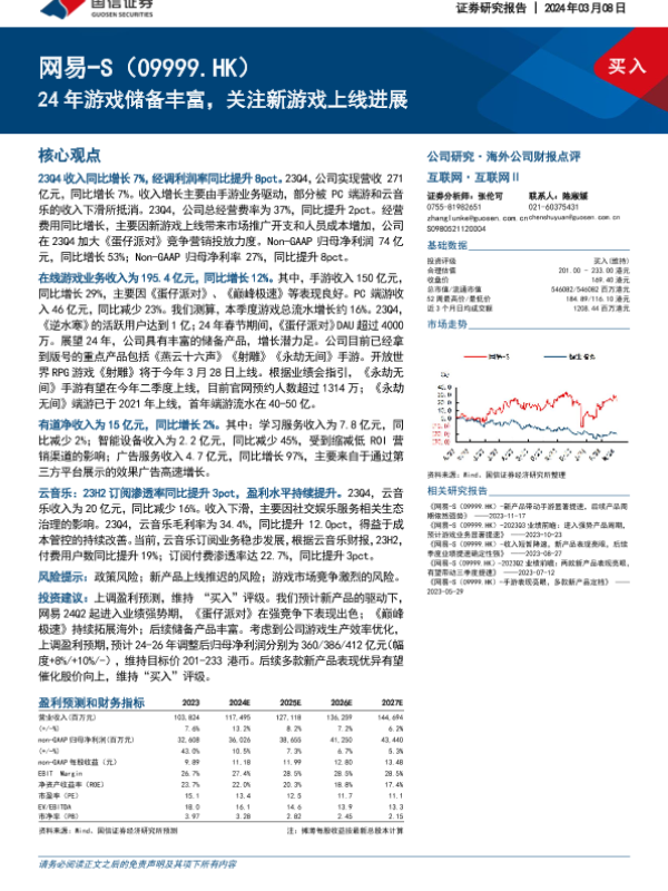 业绩预测 新游戏上线 游戏行业 网易 股票分析