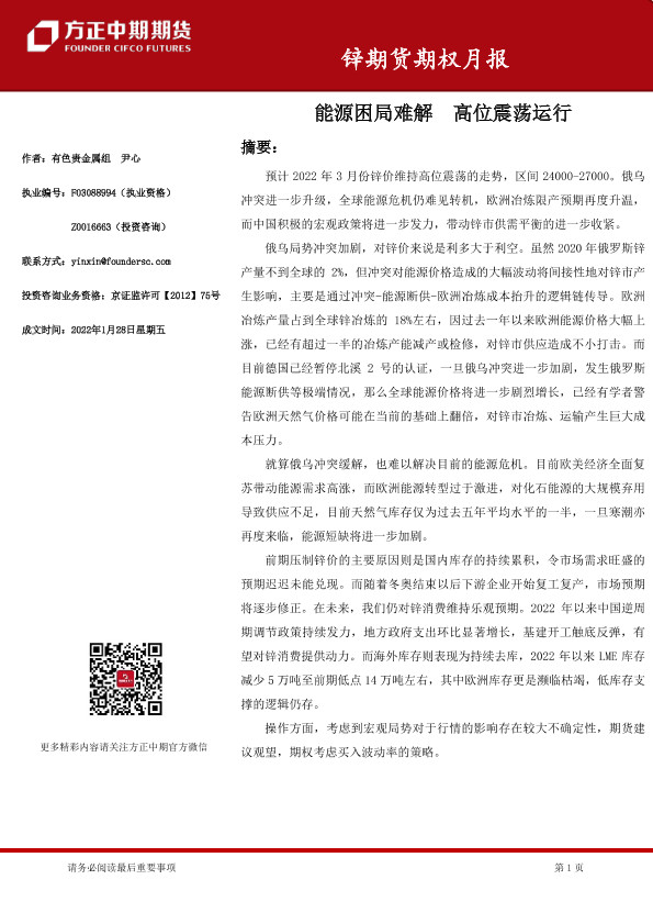 【方正中期期货】【20220128】锌期货期权月报-38页