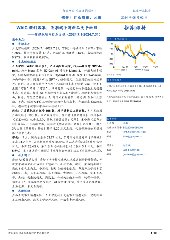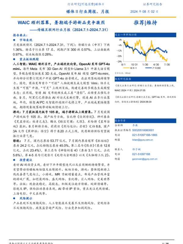 【国元证券】【20240802】WAIC顺利落幕,暑期端手游新品竞争激烈——传媒互联网行业月报(2024.7.1-2024.7.31)-30页