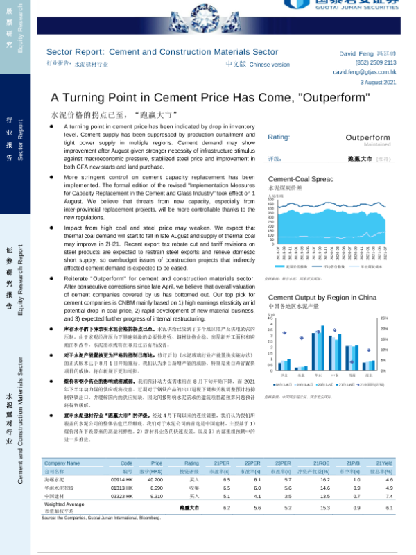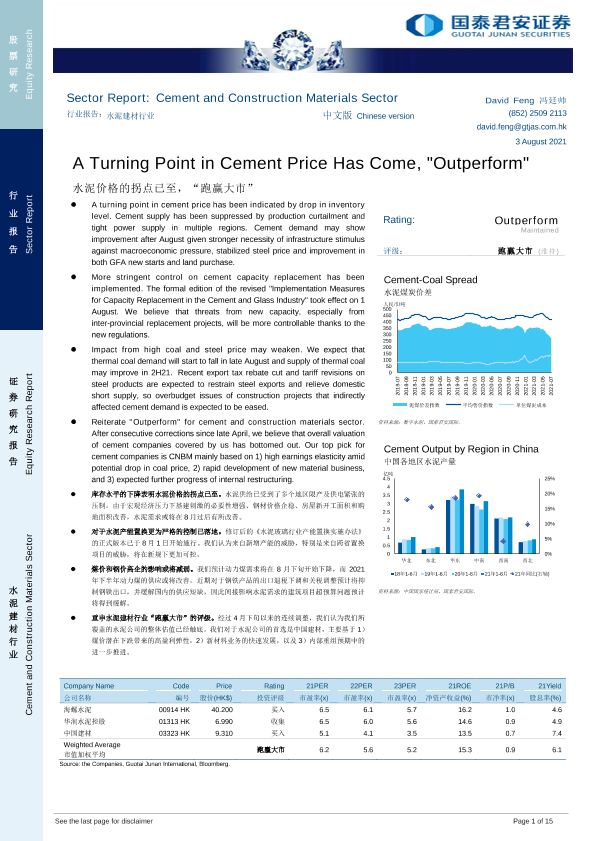 【国泰君安证券】【20210803】水泥建材行业:水泥价格的拐点已至,“跑赢大市”-15页