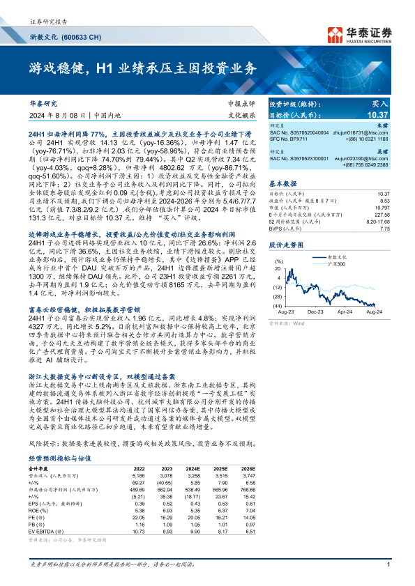 【华泰证券】【20240808】游戏稳健,H1业绩承压主因投资业务-7页