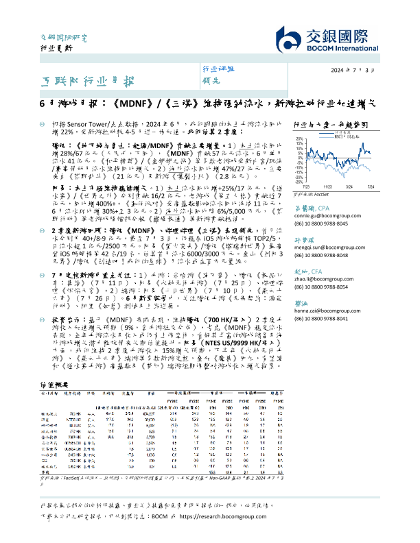 【交银国际】【20240703】6月游戏月报:《MDNF》-《三谋》维持强劲流水,新游拉动行业加速增长-9页