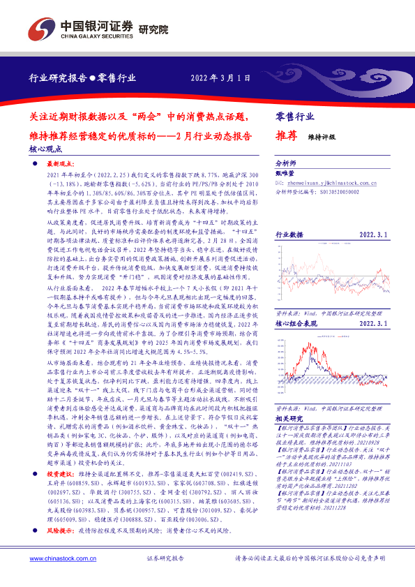 【银河证券】【20220301】零售行业2月行业动态报告:关注近期财报数据以及“两会”中的消费热点话题,维持推荐经营稳定的优质标的-27页