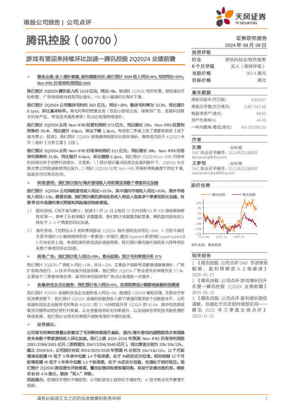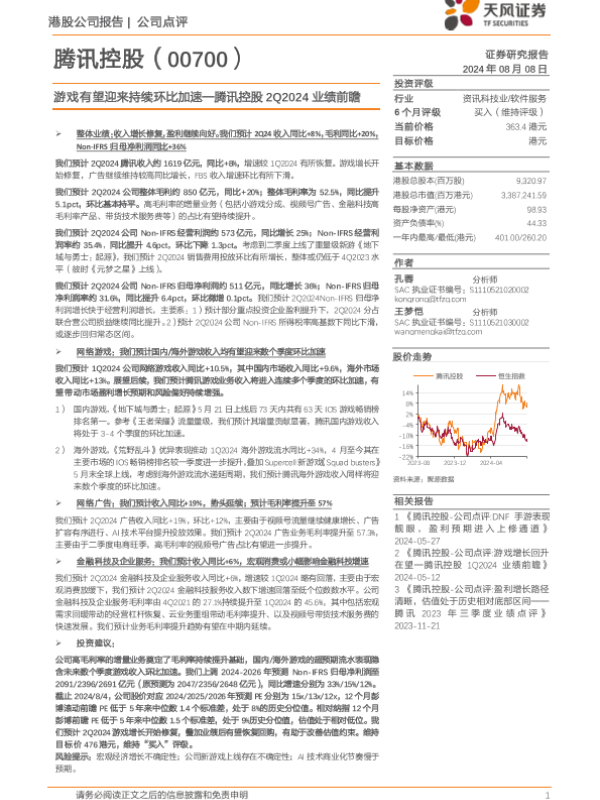 【天风证券】【202408】2Q2024业绩前瞻:游戏有望迎来持续环比加速-2页