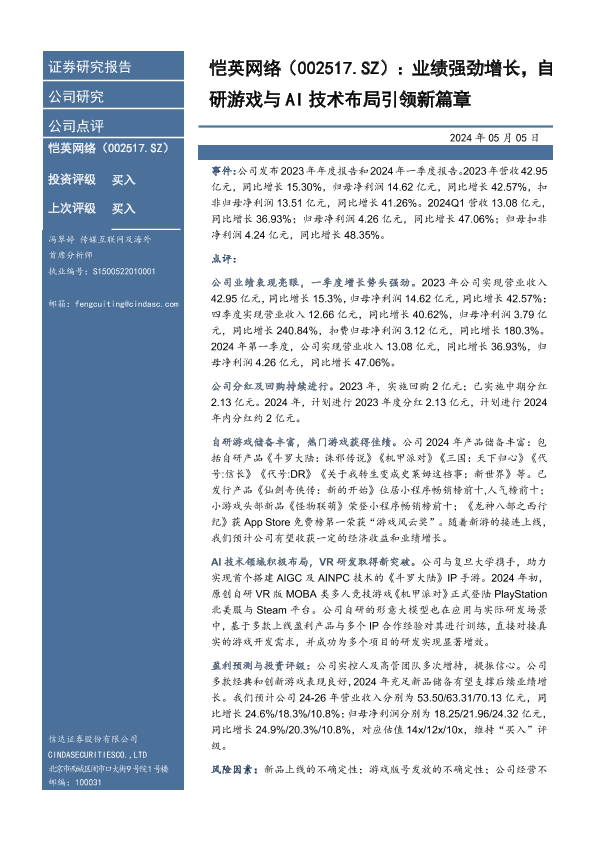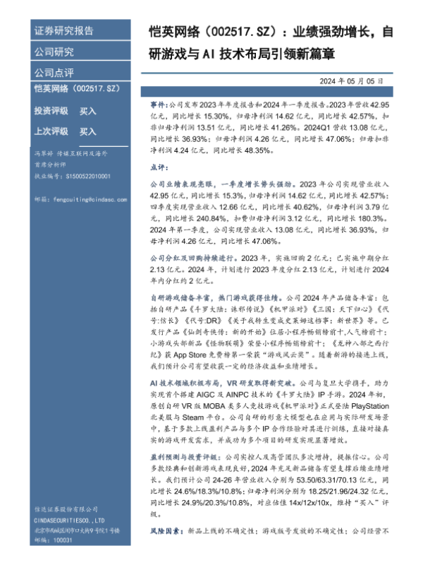 【信达证券】【20240505】恺英网络(002517.SZ):业绩强劲增长,自研游戏与AI技术布局引领新篇章-5页