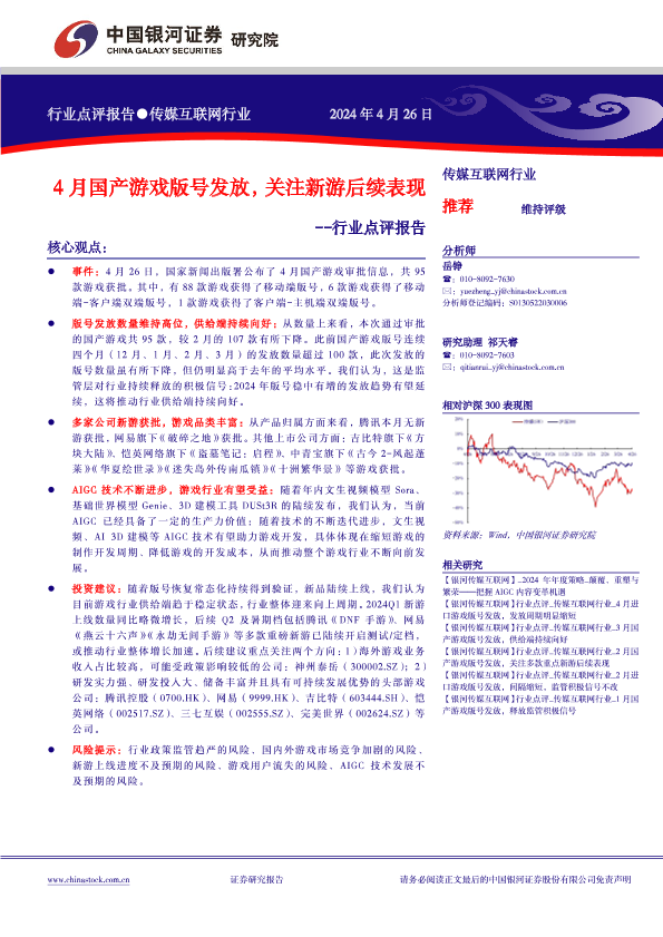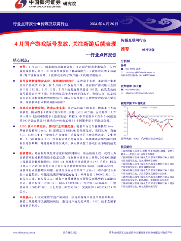【银河证券】【20240426】4月国产游戏版号发放,关注新游后续表现-7页