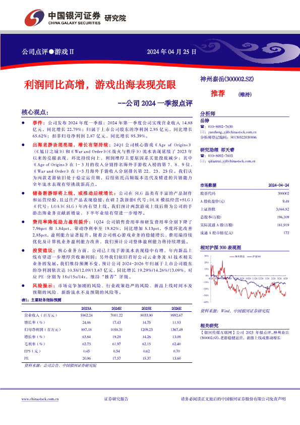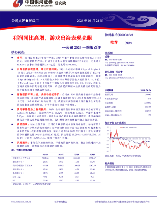 【银河证券】【20240425】公司2024一季报点评:利润同比高增,游戏出海表现亮眼-3页