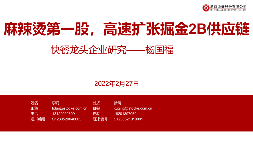 【浙商证券】【20220227】餐饮行业快餐龙头企业研究:杨国福,麻辣烫第一股,高速扩张掘金2B供应链-29页