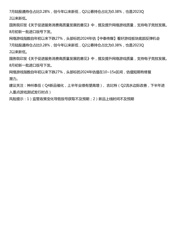 【中泰证券】【2023】中泰传媒看好游戏板块底部反弹机会7月陆股通持仓占比0-1页