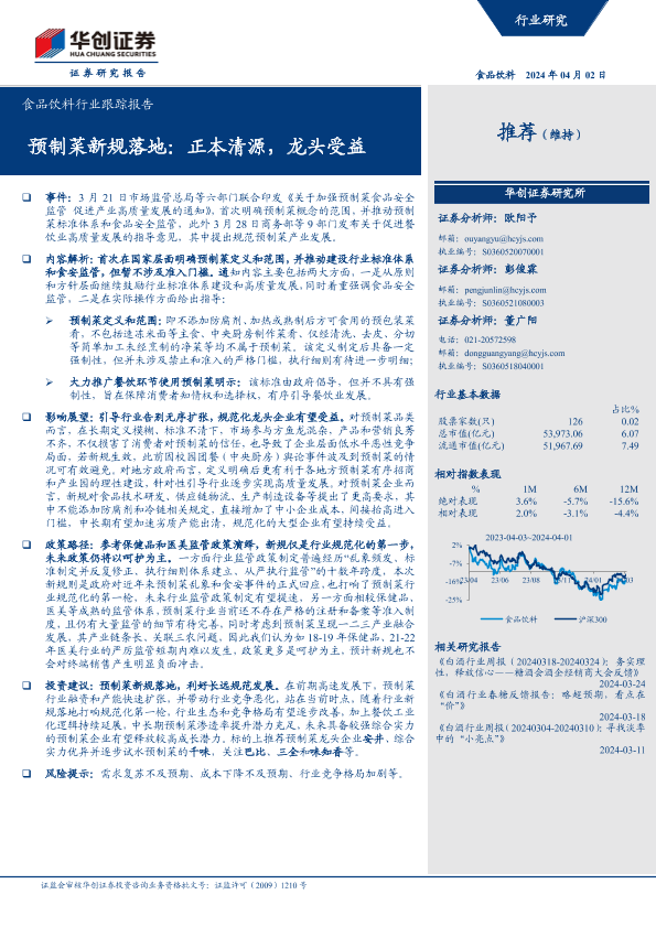 【华创证券】【20240402】食品饮料行业跟踪报告:预制菜新规落地:正本清源,龙头受益-9页
