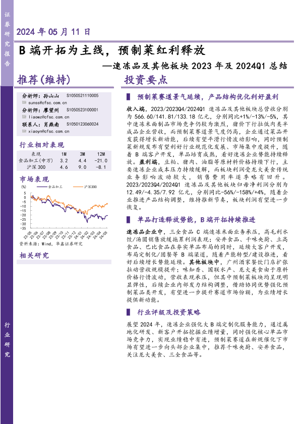 【华鑫证券】【20240511】速冻品及其他板块2023年及2024Q1总结:B端开拓为主线,预制菜红利释放-22页