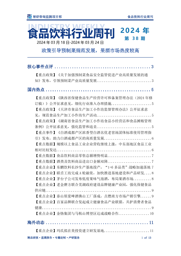 【智研咨询】【202403】食品饮料行业周刊:政策引导预制菜规范发展,果酒市场热度较高-13页