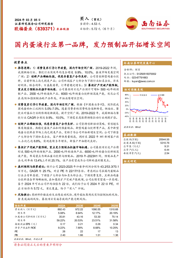 【西南证券】【20240305】国内蛋液行业第一品牌,发力预制品开拓增长空间-23页