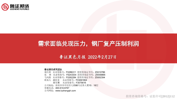 【鲁证期货】【20220227】黑色月报:需求面临兑现压力,钢厂复产压制利润-123页