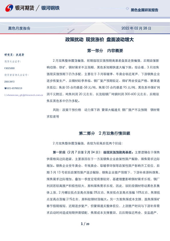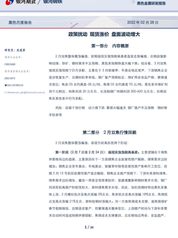 【银河期货】【20220228】黑色月度报告:政策扰动,现货涨价,盘面波动增大-20页