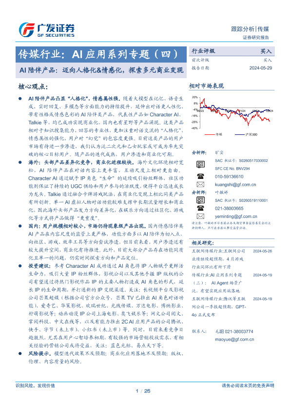 【广发证券】【20240529】传媒行业:AI应用系列专题(四)AI陪伴产品:迈向人格化&情感化,探索多元商业变现-25页