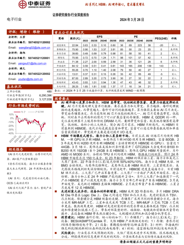 【中泰证券】【20240326】电子行业AI系列之HBM:AI硬件核心,需求爆发增长-42页