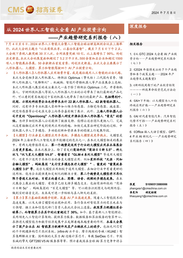 【海通证券】【20240708】从2024世界人工智能大会看AI产业投资方向-26页