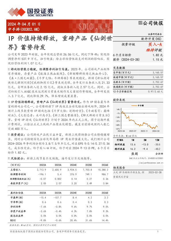 【国投证券】【20240401】IP价值持续释放,重磅产品《仙剑世界》蓄势待发-4页