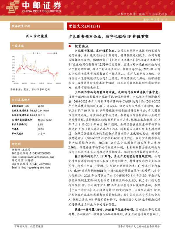 【中邮证券】【20240315】少儿图书领军企业,数字化驱动IP价值重塑-22页