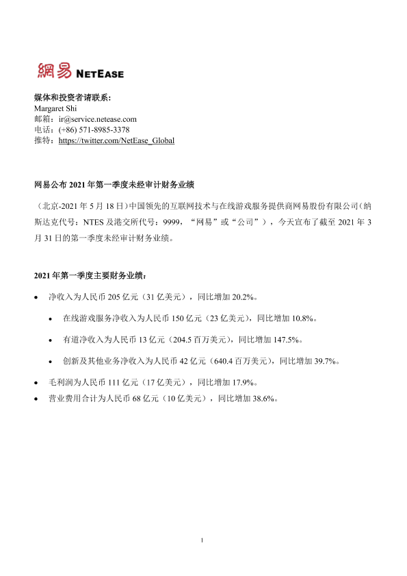 【网易股份有限公司】【20210518】2021年第一季度网易财报-14页