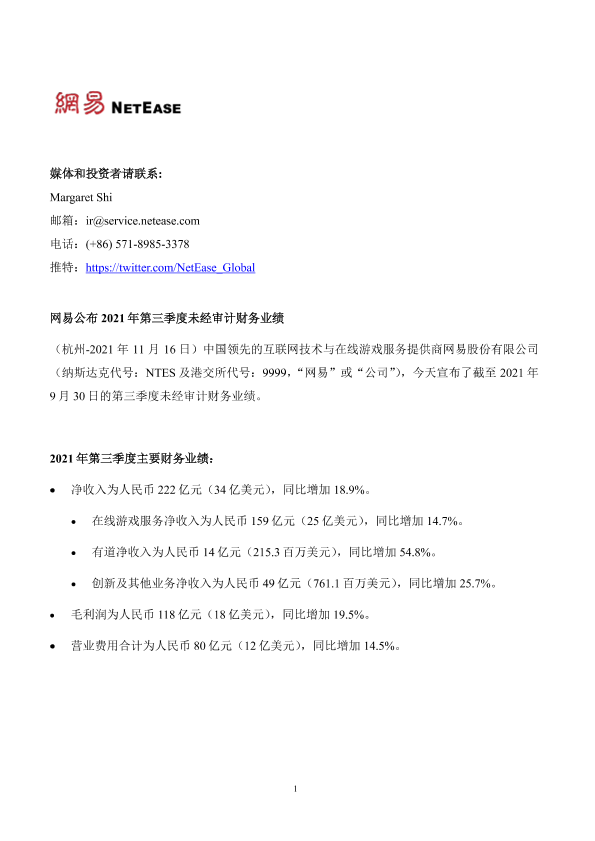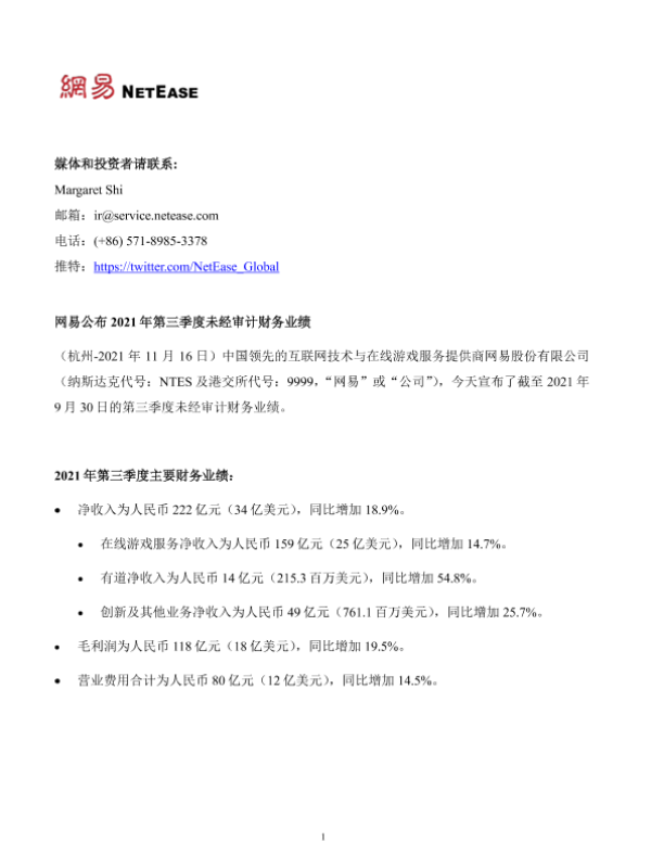 【网易股份有限公司】【20211116】2021年第三季度网易财报-15页