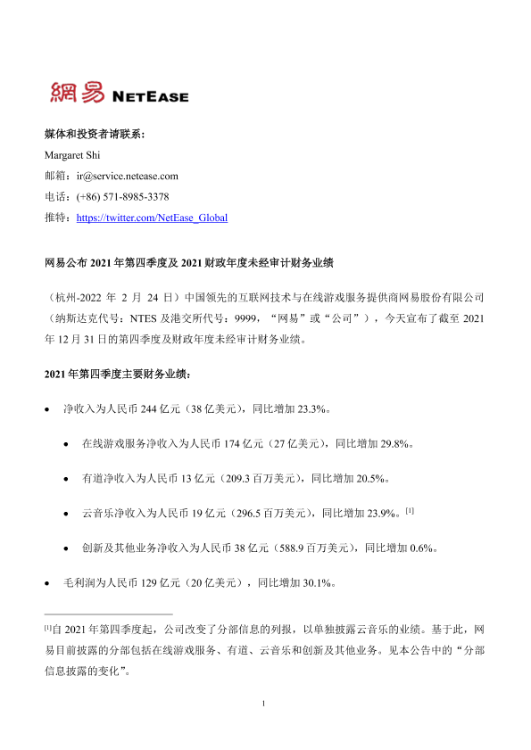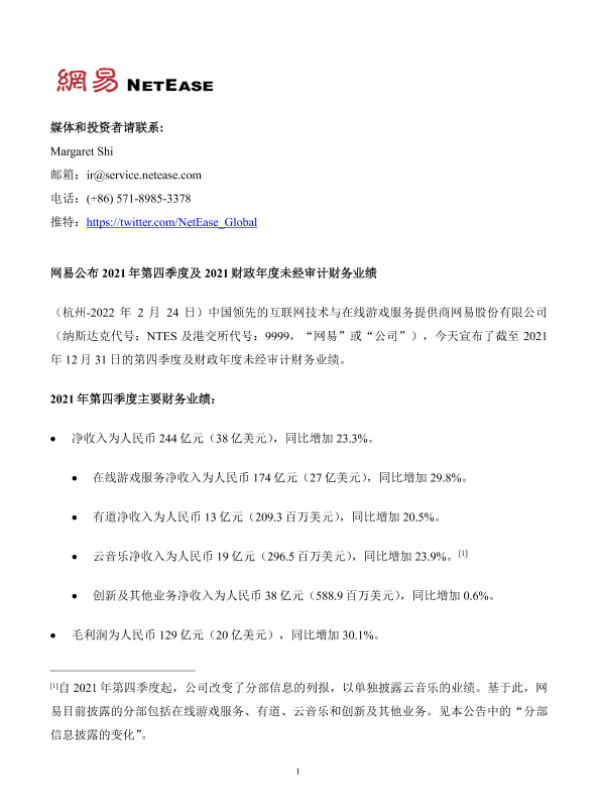 【网易股份有限公司】【20220224】2021年第四季度及全年网易财报-18页