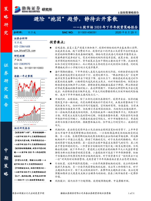 【渤海证券】【20200629】A股市场2020年下半年投资策略报告:避险“抱团”趋势,静待云开雾散-31页