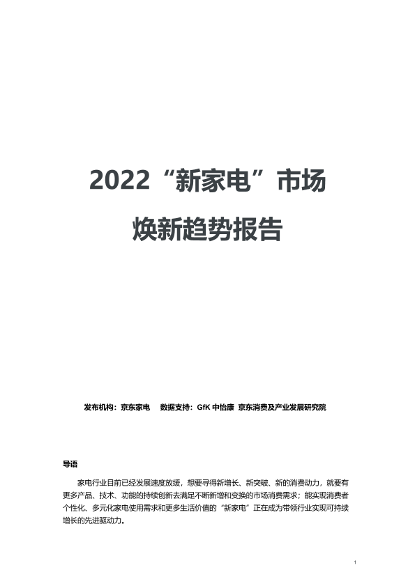 【京东家电 数据支持:GfK中怡康 京东消费及产业发展研究院】【2022】2022“新家电”市场焕新趋势报告-13页