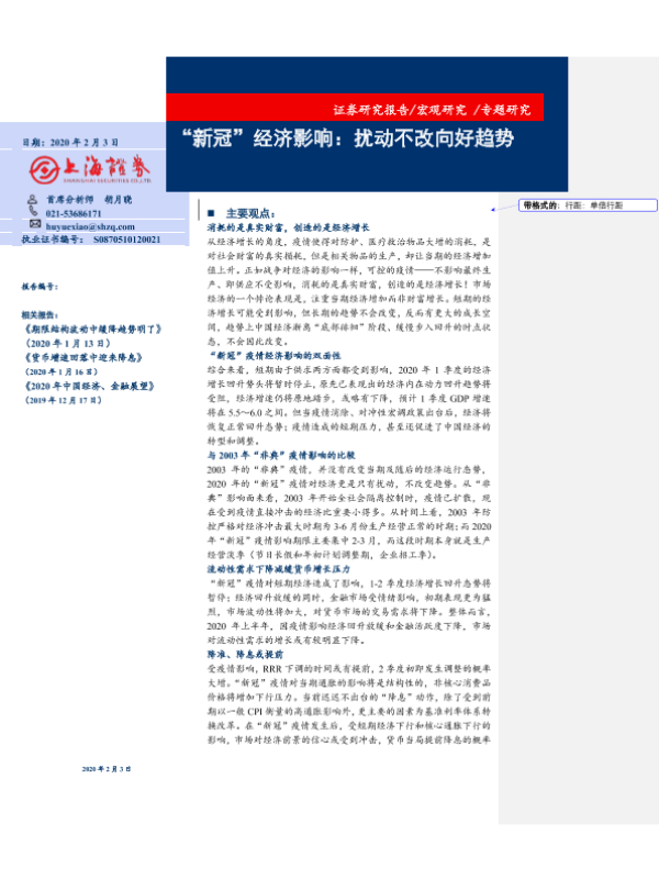 【上海证券】【20200203】宏观经济报告- “新冠”经济影响:扰动不改向好趋势-20页