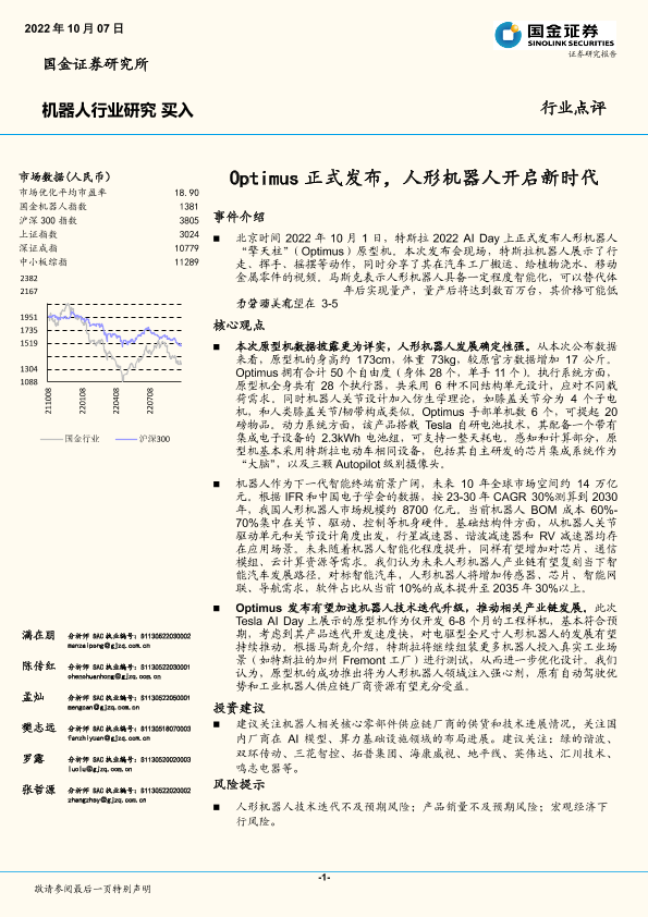 【国金证券】【20221007】机器人行业研究:Optimus正式发布,人形机器人开启新时代-11页