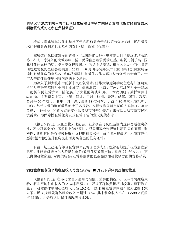 【清华大学建筑学院住宅与社区研究所和贝壳研究院】【202106】新市民租赁需求洞察报告系列之租金负担调查-6页
