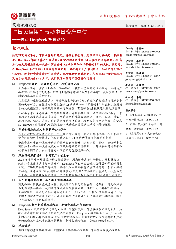 【浙商证券】【20250225】20250306-策略深度报告:再论DeepSeek投资路径-“国民应用”带动中国资产重估-31页