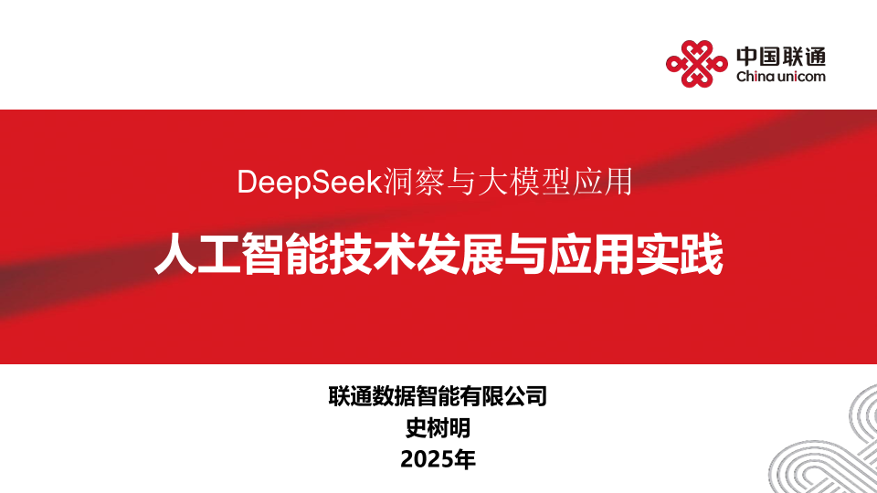 【联通数据智能有限公司】【20250324】2025年DeepSeek洞察与大模型应用-人工智能技术发展与应用实践报告-37页