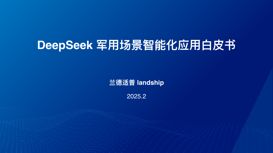 【兰德适普】【20250324】2025年DeepSeek军用场景智能化应用白皮书-29页
