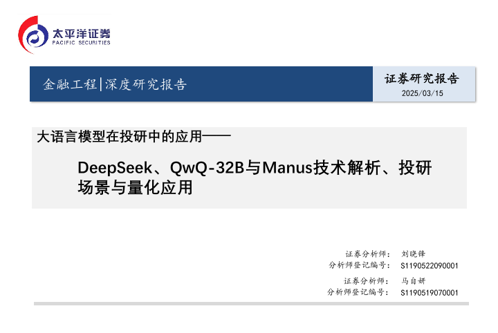 【太平洋证券】【20250315】大语言模型在投研中的应用:DeepSeek、QwQ-32B与Manus技术解析、投研场景与量化应用-30页