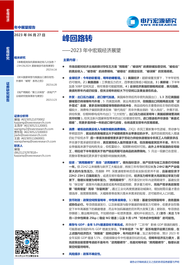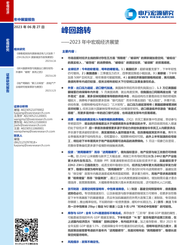 【申万宏源】【20230627】2023年中宏观经济展望:峰回路转-31页